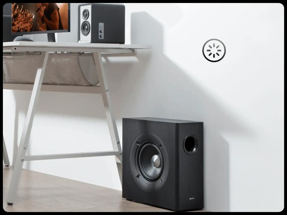 Equipado con un woofer de largo alcance de 8 pulgadas, este subwoofer ofrece graves profundos y envolventes con una respuesta de frecuencia de hasta 35 Hz. Una fuente de alimentación conmutada de alta eficiencia y un amplificador de clase D de bucle cerrado proporcionan una salida de 70 W RMS para un rendimiento potente y consistente.