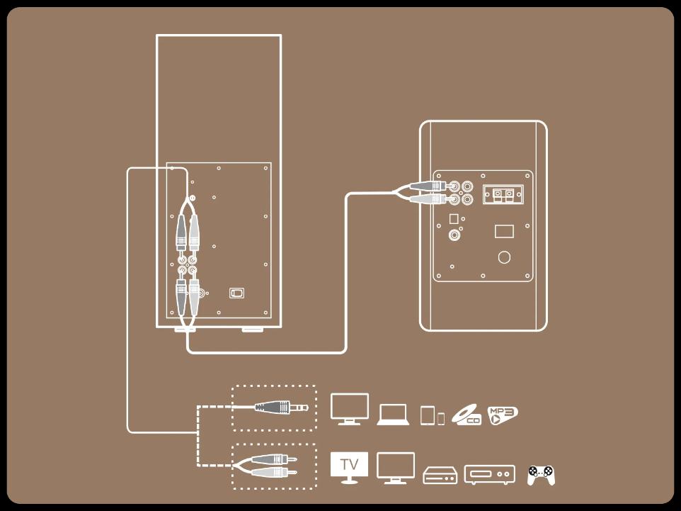 Los puertos de entrada de señal y salida de señal garantizan una amplia compatibilidad con parlantes de escritorio, sistemas de estantería y receptores de cine en casa.