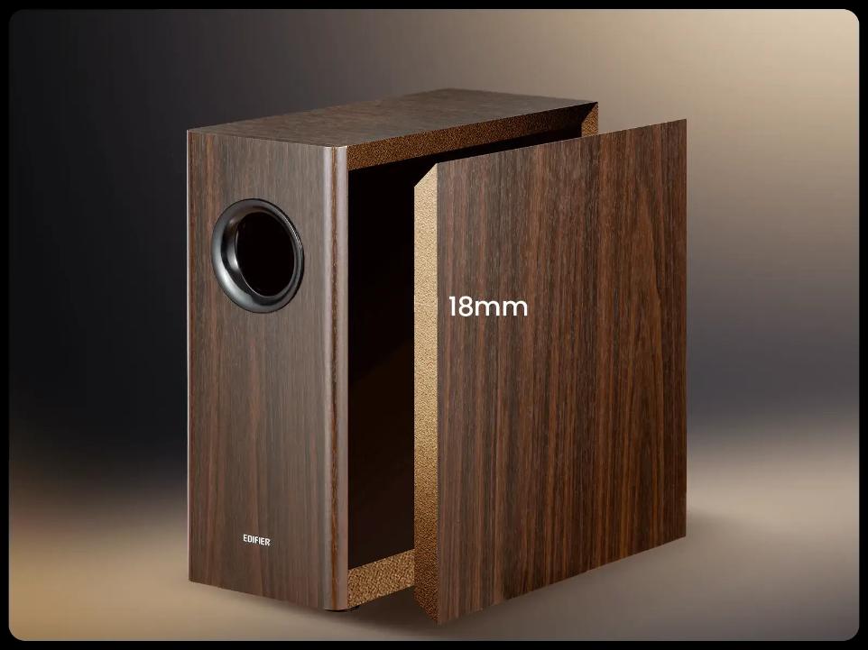 Un gabinete de MDF (tablero de fibra de densidad media) de 18 mm minimiza la resonancia y la distorsión, lo que da como resultado una respuesta de graves ajustada, limpia y bien definida.